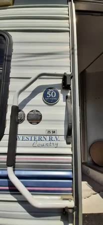 All appliances in perfect working order; Attwood gas/lp heater (30,000 BTU), Magic Chef gas/lp stove and oven, Jensen Range Hood, Domestic electric refrigerator. There is plenty of storage inside and out and it's winterized. Has privacy blind in the master bedroom (queen size), with sliding door between living/dining room and bathroom and a very large shower. The exterior has a 20' awning.